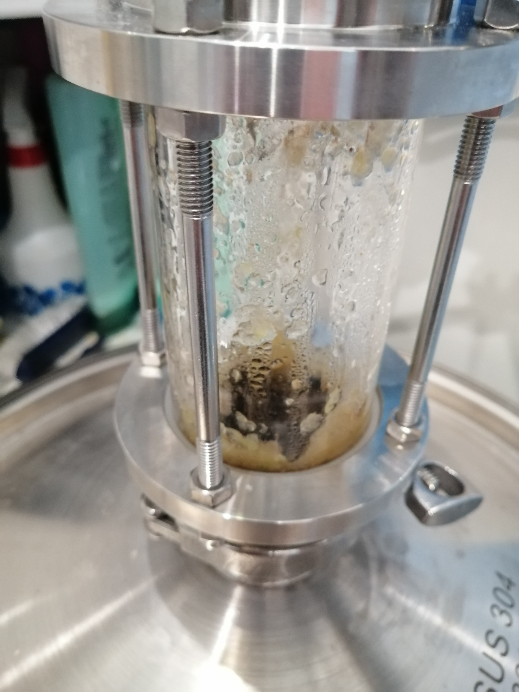 Узел отбора криво собран, там эти шпильки перетянуты и тело диска повело, и узел уже не соосен стал. А дэф после него тем паче криво встал. И капает не симметрично с узла орошения. Меня прям ломать начало на этом моменте. Хотел уже ругаться -воевать с продавцом. Ну какого хуя я отдал такие бабки, и у меня на одну сторону орошает сильнее. Потом бухнул, и думаю-какого хуя, попробую аккуратно выставить шпильки. Прикинул что силиконовая прокладка толстая, и есть некий допустимый ход шпилек чтобы стекло не ебануло. И отрегулировал, просто идеально, уровень пиздос, все точки орошения работают равномерно. Аккреционный диск узла отбора, в который вписаны шпильки выглядит ебано и перетянуто, но сам узел отбора параллелен реальности, и общая ось колонны просто охуенная. Но это может я слишком изысканный любитель спирта. В целом, все узлы аппарата тяжелые и внушают уважение, выглядят по взрослому, ну типа реальная хуерлыга для спирта.