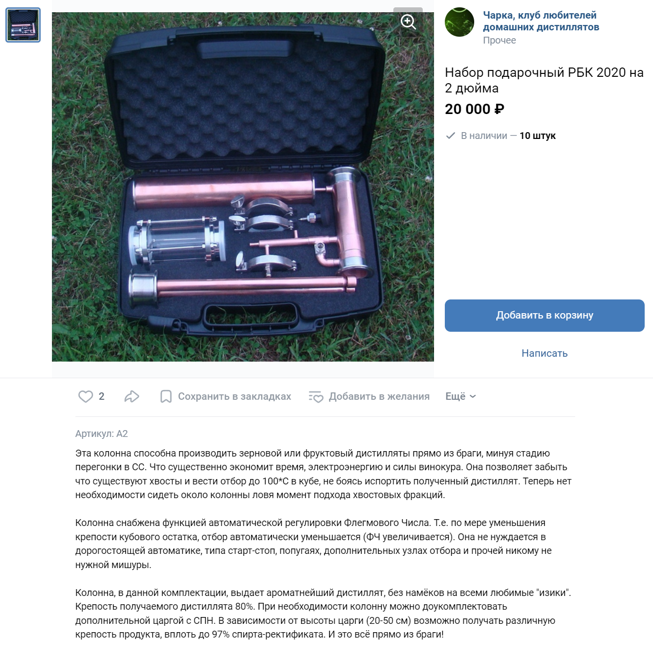 >А там решить, нужно оно тебе или нет. Мне-то не нужно, сэм с колонны я товарический как раз уже пробовал, зашло, но самому покупать смысла нет - зерно и фрукты редко делаю. Просто интересно, получится ли получить что-то похожее на колпачки способом, который выше написал. В январе чачу буду делать из концентрата этим методом, отпишу по результату. Ща нашёл на ютубе, какой-то мужик такую идею уже опробовал, как на заказ, говорит норм тема.
