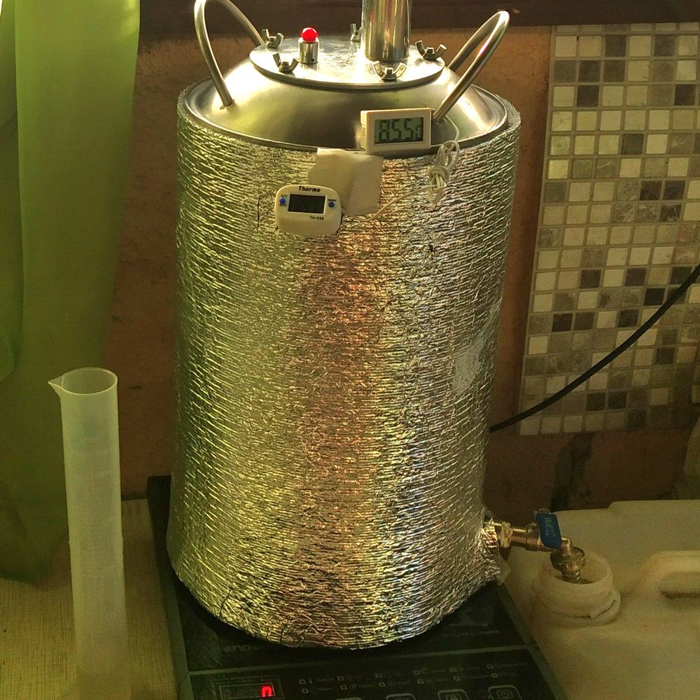 Экспериментатор на связи. Вчера перегнал добродившую пшеничную муку на ангелокодзях. Пены при брожении, как пугали ИТТ, не было, при перегонке тоже. Получил со стандартной бродильной белой бочки 7.5л. сырца крепостью в районе 30%. Завтра заряжу вторую бочку с пшеничной крупой на перегонку, на выходных обе партии сырца пущу на второй перегон. Ещё поставил смесь 60% кукурузы, 25% пшена и 15% ячки, посмотрим чо получится.