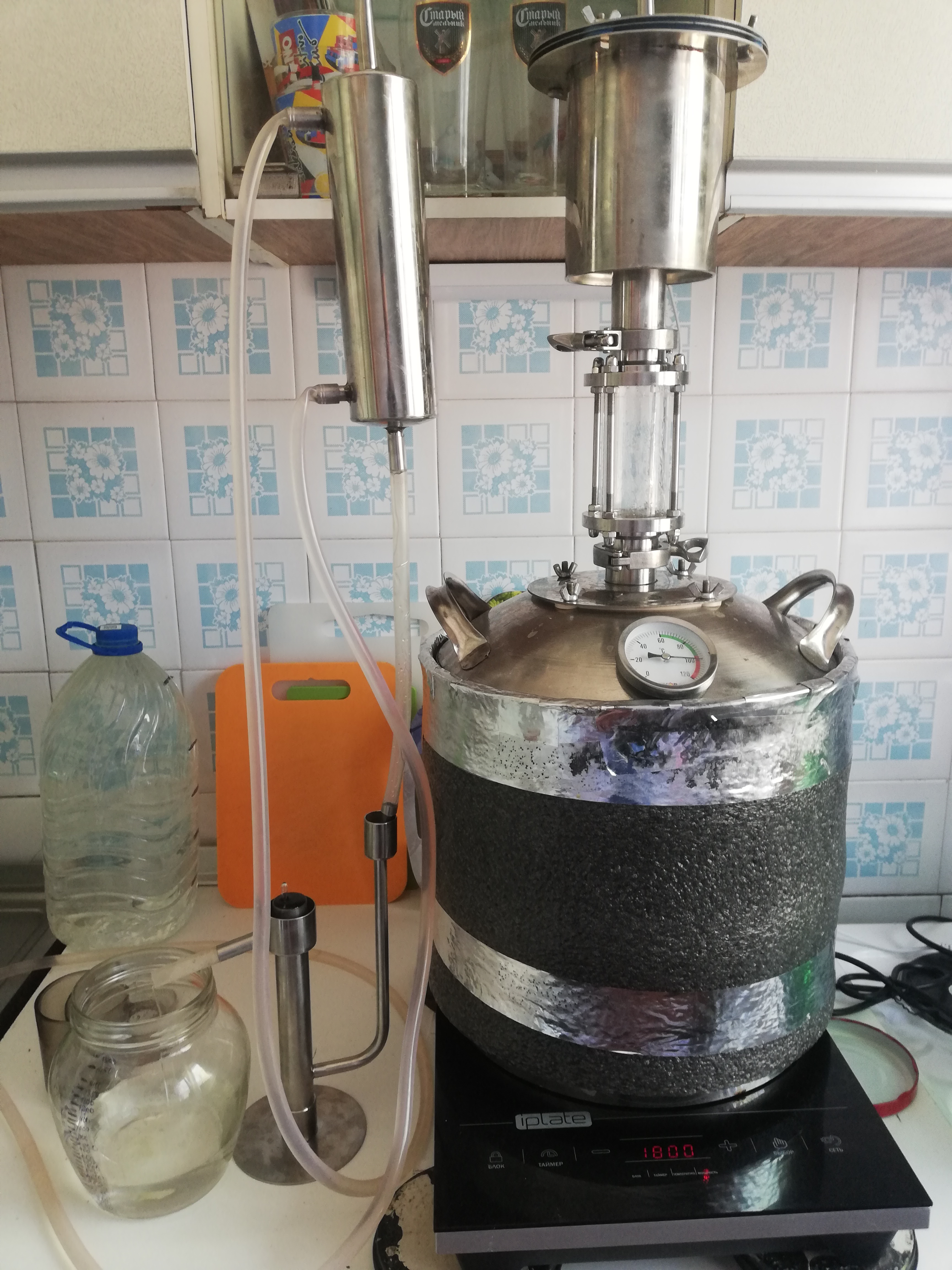 >>1300854 Смысл при наличии дефлегматора заморачиваться купольной крышкой? Купольные крышки и прочие аламбики - это по сути слабые воздушные дефлегматоры. Если есть колонна с отбором выше дефа, наличие или отсутствие купола ничего не значит - всё дело в настойке дефа. Убрал купол, подал в деф чуть больше воды, результат идентичный.