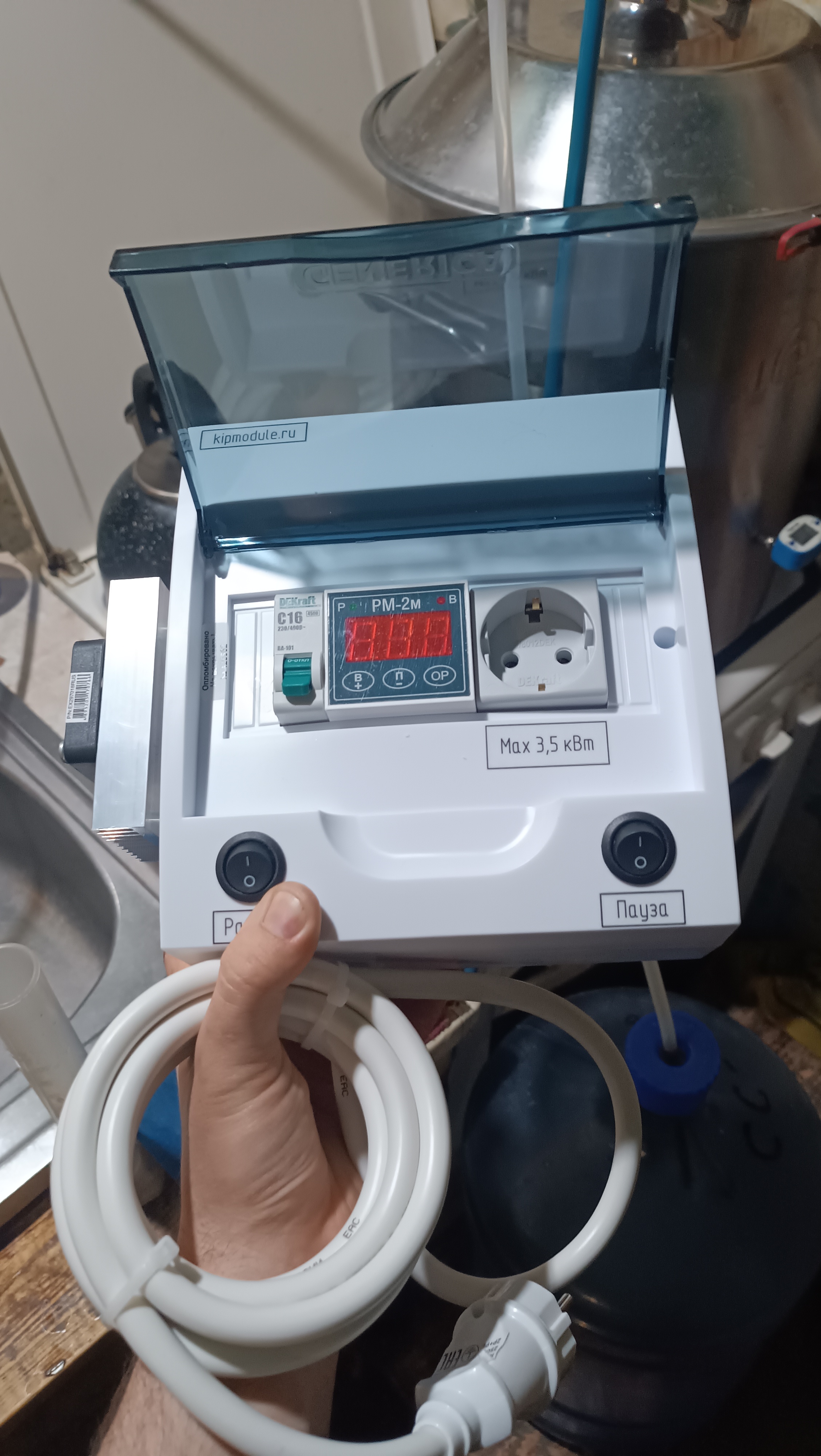 Здарова, братья винокуры. Заполучил наконец вот эту штучку, пойду смотреть ютуб, какие кнопки клацать. От тумблера "разгон" становится страшно, моя проводка 3.5кв не выдержит.