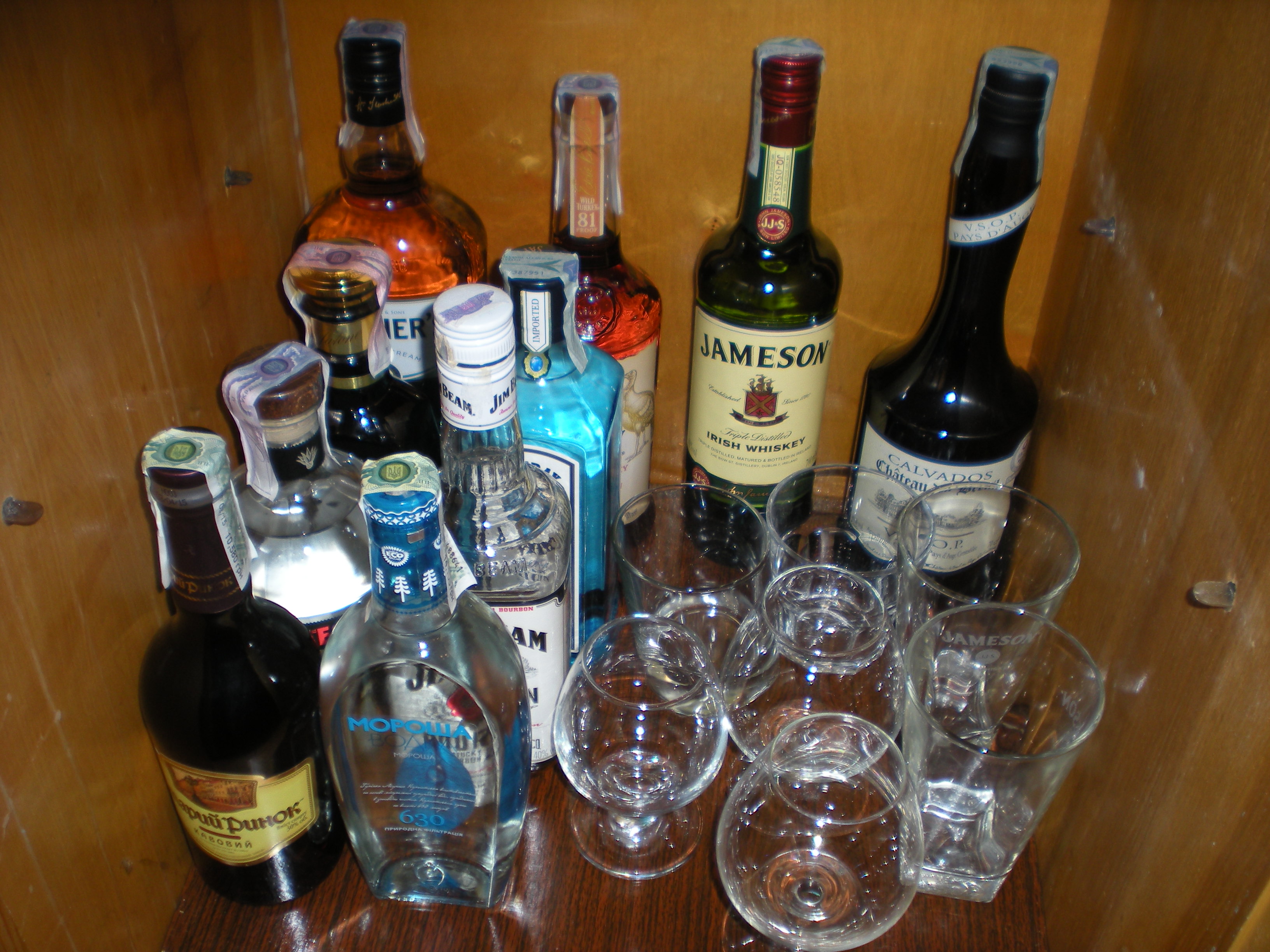 1. Вот мой скромный бар со всякой попсятиной. 2. Дополнительный запас винищ, хранится в одежном шкапу, ибо места для него нет. 3. Там же немного пива и запивона.