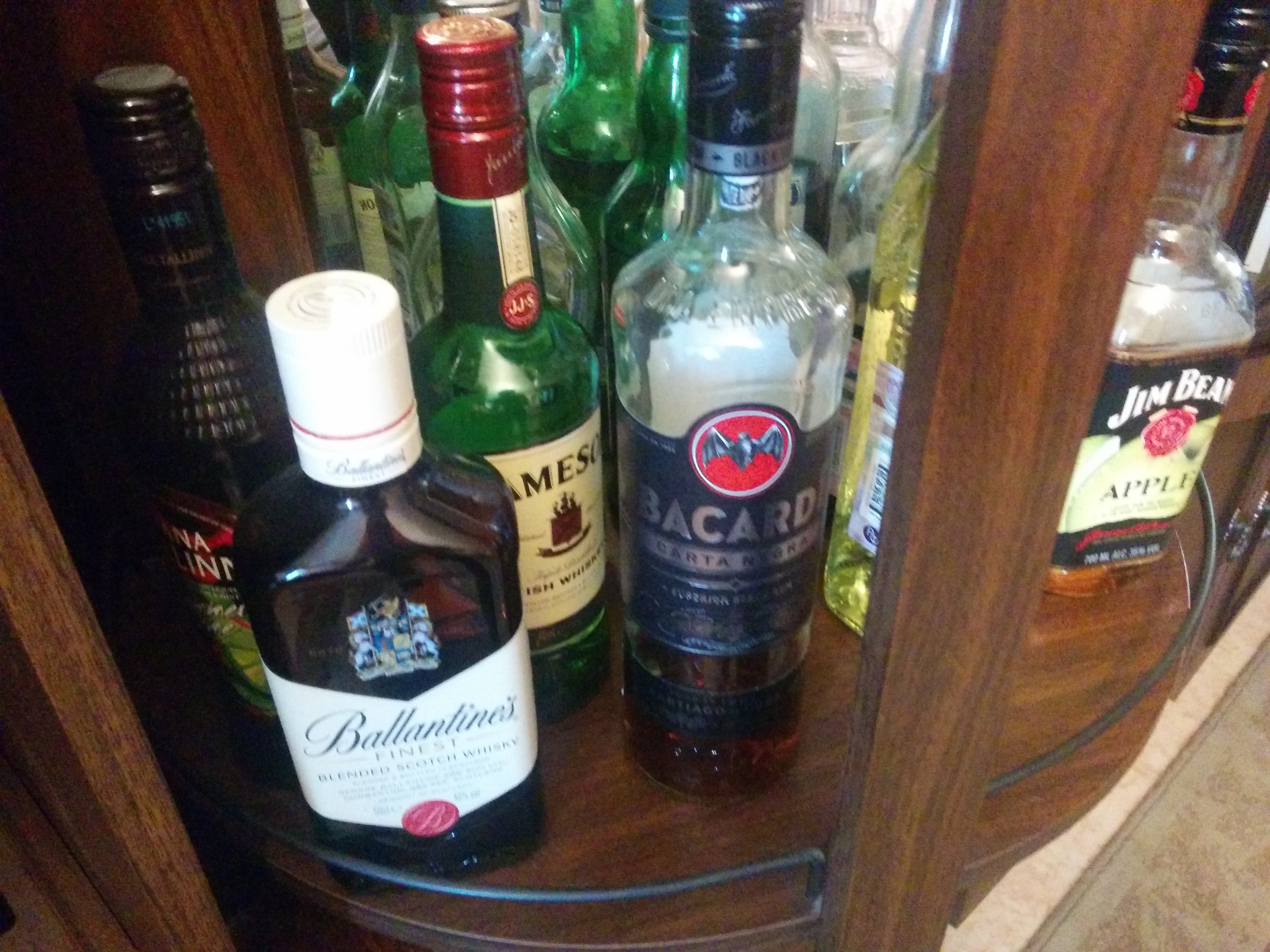 Ох ебать, а тред-то ещё жив. Ладно, вкину свой слегка разросшийся бар. Полка 1 - обычный крепкий алкоголь. Полка 2 - всякие ликеры и иже с ними для коктейлей. Полка 3 - более-менее экзотика, которую лучше пить в одиночку. Да, знаю что наборчик так себе и ценности не представляет. Но для домашних посиделок с быдлококтейльчиками сойдет. >>632 - кун