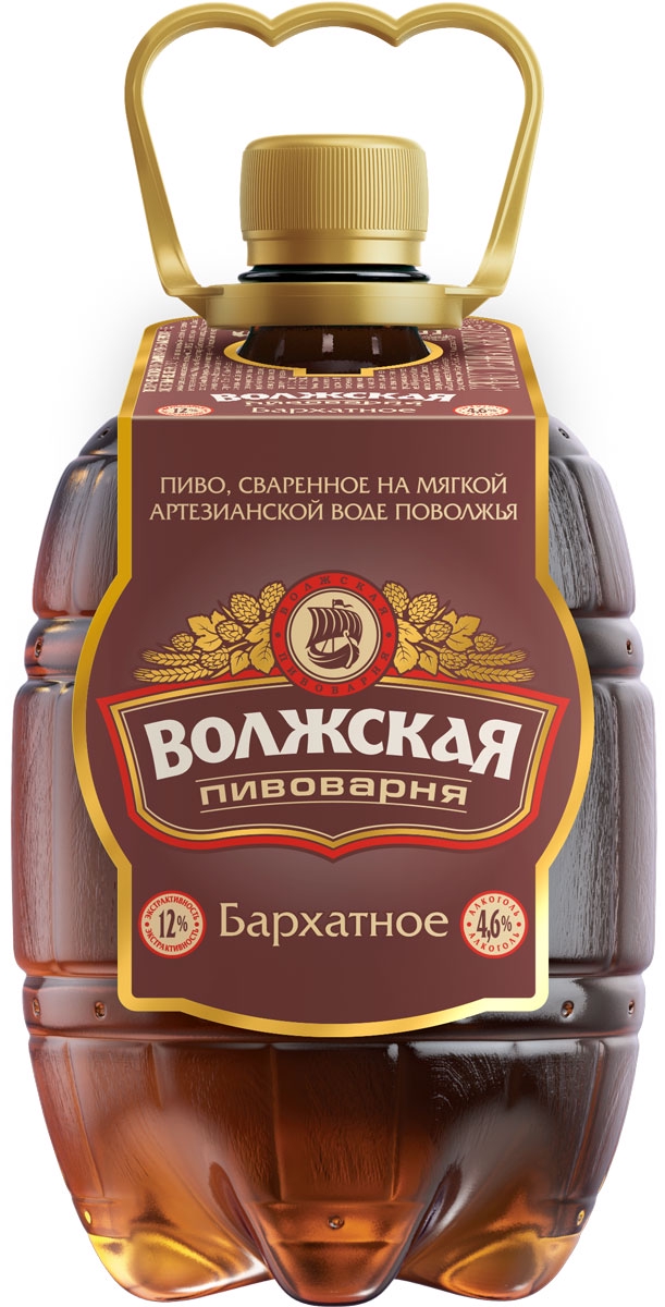 Темное пастеризованное фильтрованное «Бархатное традиционное». Состав: вода, солод пивоваренный ячменный светлый, солод пивоваренный ячменный карамельный, солод пивоваренный ячменный жженый, хмель. 12%, 4,6%. Изготовитель: ООО «Трехсосенский». ГОСТ 31711. Объем: 450 мл. Срок годности 270 суток в стеклянной бутылке. 4607056587132. Оно же под названием «Волжская пивоварня бархатное» в пластиковой бутылке объемом 900 мл со сроком годности 120 суток. Штриховой код: 4607056587385;