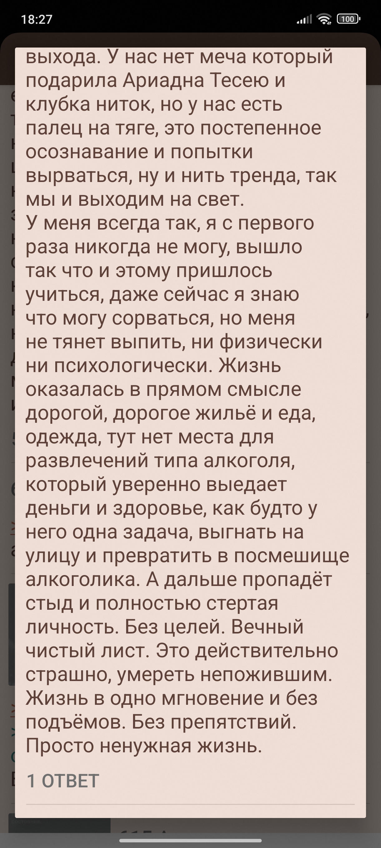 ИТТ собираются аноны, для которых употребление алкоголя стало проблемой, негативно влияющей на их жизнь. Делимся опытом как прекратить пить и что делать, чтобы не забухать опять. Взаимопомогаем и поддерживаем. Тред посвящен проблеме алкоголизма, и всех вытекающих проблем с головой.