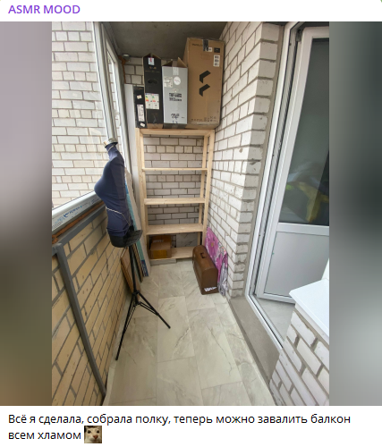 Бля чем она все время занимается, что не может нихуя норм сделать или заказать рабочих, которые этот балкон за 5 часов облагородят? Помянем придверную коробку, теперь она будет стоять на балконе.