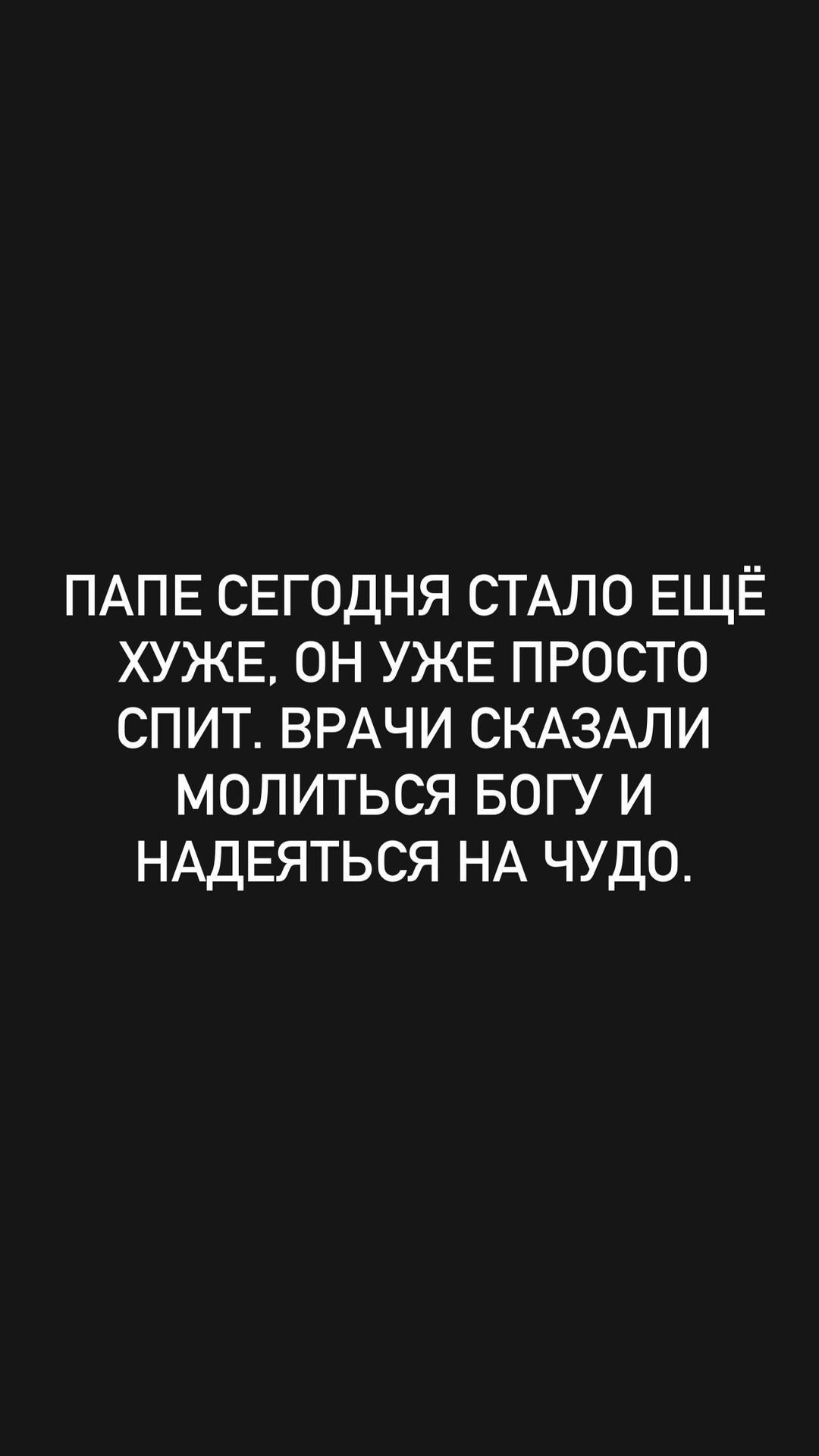 >>139754 >Страшно представить что было бы, если ко всему прочему у неё ещё и денег не было. Так для лечения её папы деньги сейчас и не нужны. Врачи ничего сделать не могут.