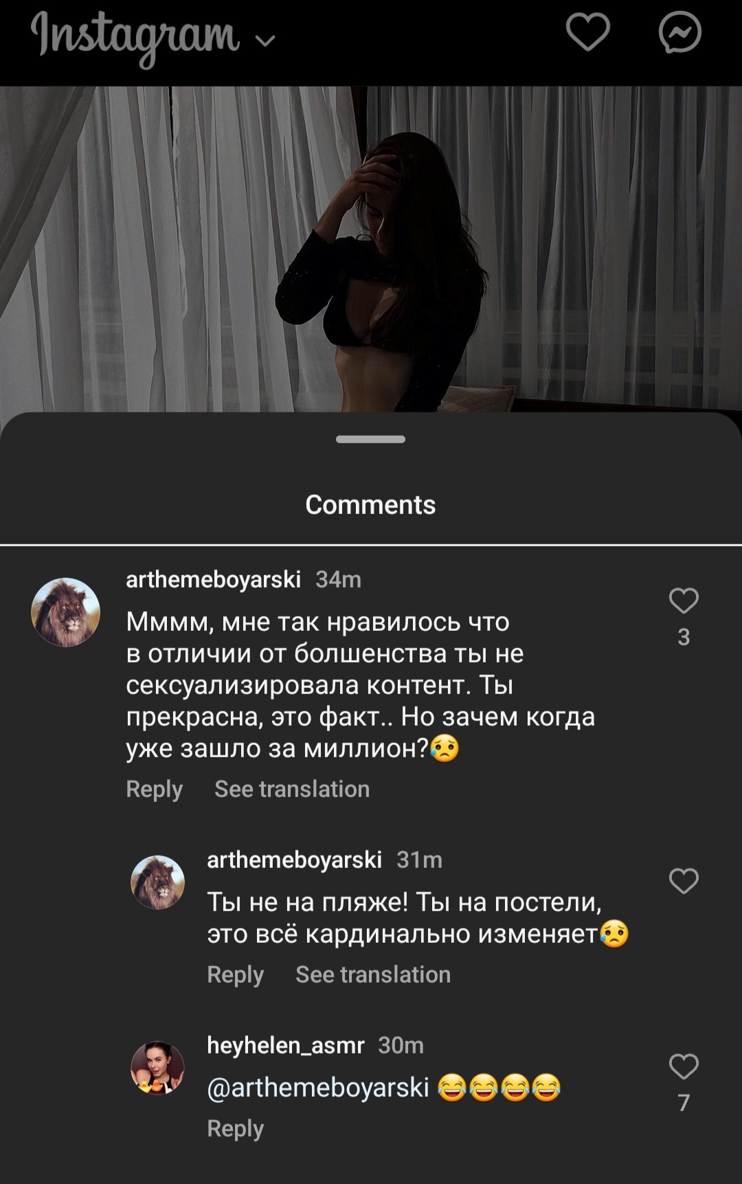 Предполагаю, что в комментариях была ссылка на инстаграм фан-аккаунта дениски, поскольку он уже не в первый раз его рекламирует у неё в телеге. А она как зашла и увидела этот кринжпост от негропенисглифа, сразу же его и удалила. Думаю, так всё и было. Ахуенные у неё модеры, конечно...