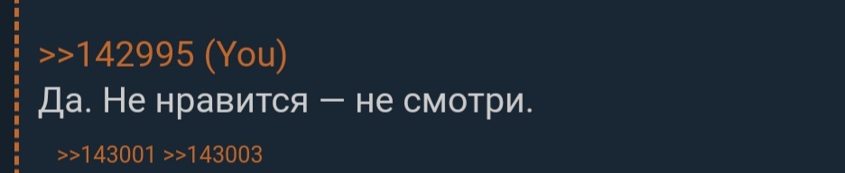 Зачастую, не только здесь а вообще в жизни все догадки людей которые высмеиваются по итогу оказываются правдой, так и тут. Так что вы, аноны, лишний раз обдумывали бы что как и почему пишите, всё таки вас Лена читает... А оно и неудивительно, в тг сплошные сектанты, которые сабж боготворят и возводят в абсолют, на ютубе комментарии абсолютно безликие и не различаются между собой, и только здесь всё без купюр. Хотя могли бы и воспользоваться ссылочкой на донатик хыыы