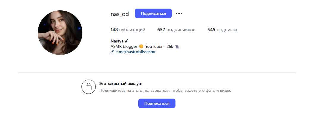 относительно новая (с 2020 года) кавказская асмрщица, которая... переехала в Корею и... ещё не раскрыла свой потенциал за 3 года юмор и бусти имеются а также скромность и красота также ;) у девочки огромный потенциал и пока что всего 19к зовут Настей.