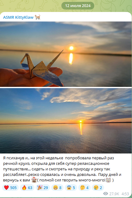 и в целом важнее не столько внешка, есть много фигуристых асмрщиц, но они не цепляют, за их внешкой ничего нет, а у тебя есть и фантазия и игрвость и интересные ролеплеи, затягивающие, ты выдумщица и фантазёрка, ты изобретательна и постоянно стараешься нас удивить и надеюсь сама получаешь удовольствие от хотя бы части своих видео, знаю что творцы самокритичны и им много не нравится, но мне со стороны видно, когда у тебя что-то реально круто получается, а когда пусть даже было много стараний но выходит так себе. могу сказать что эта вот Гейша это твой шедевр и НЕ ТОЛЬКО потому что там есть голый попик, он конечно украсил видео, безусловно, но это было первое видео в этом году, которое я посмотрел с удовольствием от первой до последней секунды. я не буду перечислять, что мне понравилось, потому что оно на 99% пиздатое, да есть огрехи, особенно в монтаже в паре моментов, но это полная ерунда, на которую хочется закрыть глаза, потому что всё остальное именно ТО КАК Я БЫ ХОТЕЛ ВИДЕТЬ твои видосы