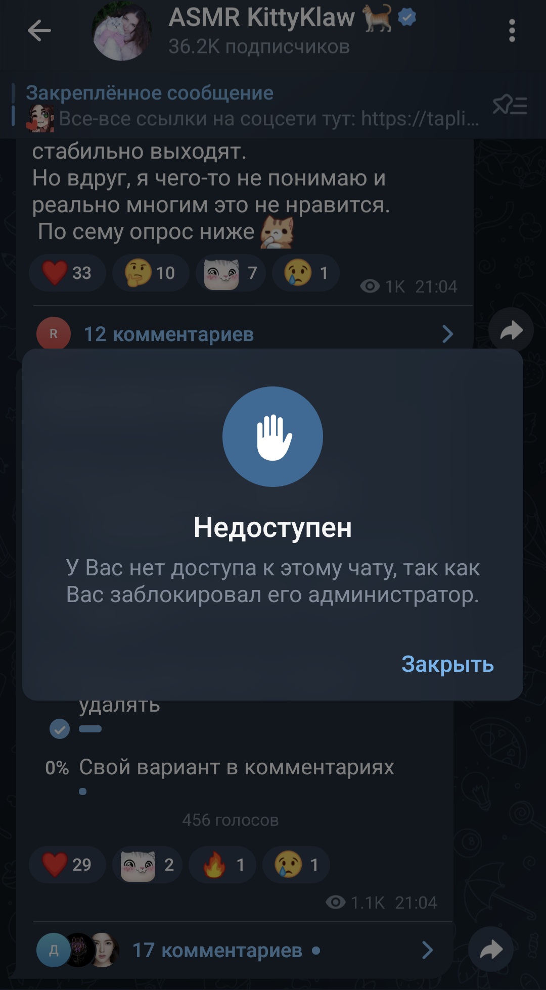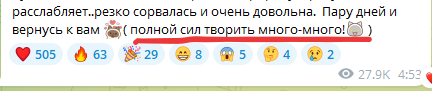 Пиздец если кто то пишет или упоминает хотя бы что Геля замужем, стираются сообщения или вообще наверное в бан улитают, а тут симп далбаёб спокойно пишет об этом, и ни хуя норм. Гелька уже поплатилась своим видео про то что живёт с мужем, столько донатеров-подписчиков отвалилось что пиздец, и просмотры упали в несколько раз, видать этот симп далбаёб хочет повторения, отписки, упадок в просмотрах - Браво, ещё и модерку ему дала в телеге хах.