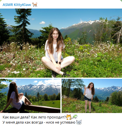 - переписывается с мужиками находясь в россии с американцами (русские мужики ей на хуй не сдались естественно) - летать в россию к врачам - снимать жильё в москве - ждёт ремонта в своей хате в москве и видимо сдаёт квартиру которую купила во владике + своё дом у неё пустает два три месяца (до этогоговорила ремонт делают там ей), а щас кто там живёт у неё, видимо сдаёт также (полагаю сдача недвижки это её и ессть работа где она упахалась вся остоянно) ибо она постоянно в телеге хуйню высирает и никем она не работает нигде, бывшая фотомодель и бывшая эскортница просирающая деньги которые накопила - по итогу на асмр она забила на личную жизнь тоже и уже сама не понимает кто она где она исходя из бредовых кружоччков что пуутает уже какой год (да я смотрю её кружочки ещё) - но самый прикол, геля реально пеерстала ей писать, после слива её сообщений на двач (это забавно конечно, как она боится всего и скрывает всё)