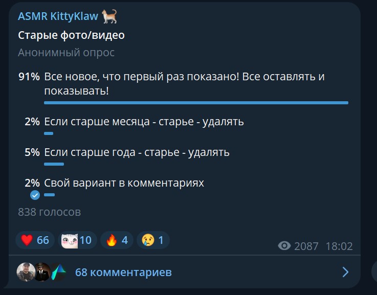 хотя если бы опрос был составлен иначе, например >Имеет ли значениеи когда был сделан контент? >1. Предпочитаю новое, люблю актуальный контент >2. Новый или старый, не имеет для меня значения >3. Главное, чтобы не год назад, пару месяцев не критично