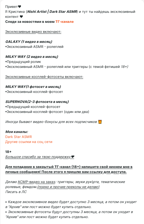 Не нашёл - создал. Dark Star ASMR / nishi artist (настоящее имя Кристина) - асмртистка, косплеерша, камвхора, и прочая прочая... Итт обсуждаем, делимся любимыми видео, сливаем эксклюзив (желательно), и всё такое