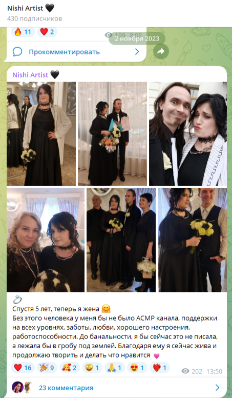 " у них всё-таки любовь " Бля смешно ару. Вот сам подумай она че должна написать была? О я выхожу за этого, потому что больше не берёт никто? И там написано что перед свадьбой они толи 5 лет толи сколько вместе были. Вот и думай. Отношения когда начинаются, то не бегут пизду всему миру показывать а ебуться часами. А она на онлике выкладывала всякое. Сейчас то что контента меньше, так не донатит никто и сама разжирела, сто анонов из 10
