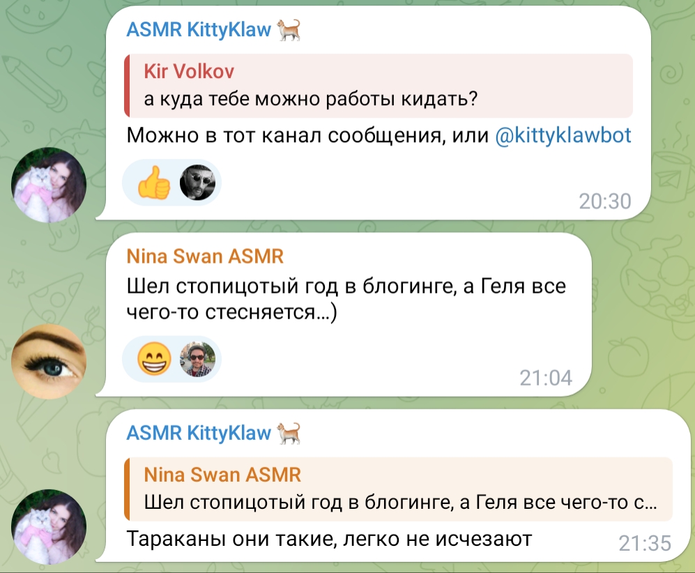 в том году как заскринил диалог гели и нины в её канале, геля моментально после скрина перестала якобы общаться с ниной, но разумеется они продолжают общение и вне канала обсуждали двач само собой (год слежу за каналом нины, и гели больше не было там)
