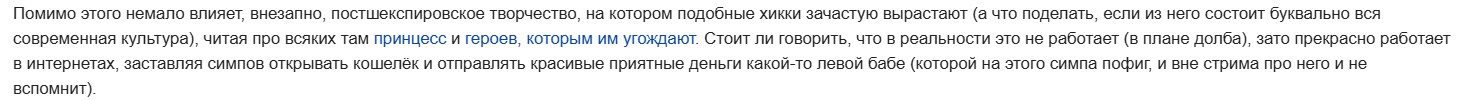 >>206364 Ну смотри, по поводу парня так и не ответила. Только о фото, хотя и ответила на то, что было выгодно. Оправдывась постоянно в комментах под видео, даже если типо «не за что» уже ставит себя в позицию виновной. Придумывать ничего не нужно о ней так, как они все делают это с типо хейтерами( напомню хейтеры все, кто с ней не согласен хоть в чем то. Таких мы баним) она сама дает повод о ней такое писать. Ведь не все закрывают глаза не не стыковки в словах и делах ее. Именно, Лена. На их совести, таких как ты. После что ты, что симпы твои все читают, зная что вас тут ждет. Переводить разговор о том и менять тему, как писали что-то 5 лет назад. Да мля много чего можно написать о ней. Чего они так бомбят на этот самый хейт, хотя хейта там процента 2 всего. Их почитать/послушать, так там можна реально подумать, шо двачевские на их фоне не такие уж и токсичные.