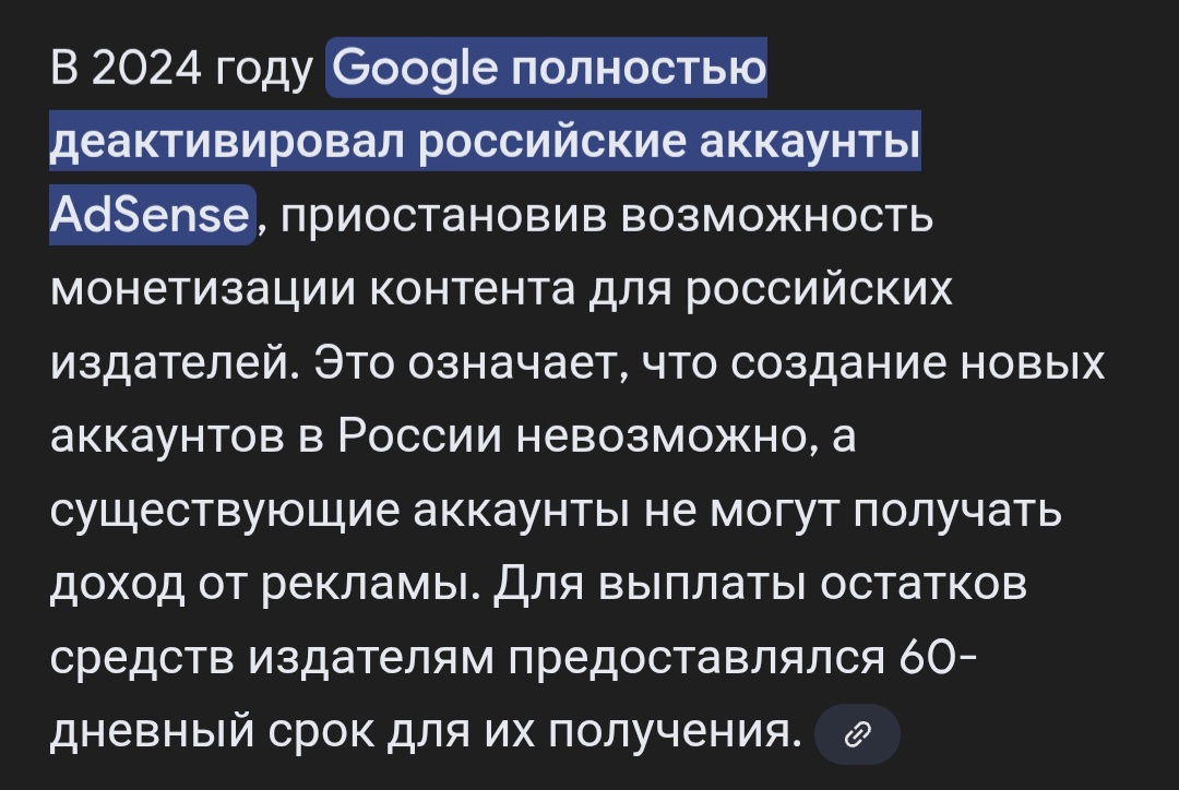 >>206055 Старые адсенсы не хуйнули, и они дальше работают, нет возможности создать на рф документы новый - да, но это решеается, повторяю - поездкой в другую страну и дальнейшим оформлением, либо регой на родственника из другой страны, либо подключением к кому-то, в телеге полно тех кто предлагает такую услугу, есть и сервисы гугли - paytrix adsense, а можно просто купить адсенс зареганый уже на другую страны, пиздец кидает мне парашу из гугла