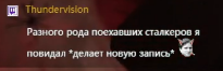 Какой же Thundervision больной человек. Он уже зависим от Лены. Круглосуточно сидит у нее абсолютно везде в комментах. Блять, даже рэйндроп с его "ты молодец и умница" и прочей хуйней по сравнению с ним выглядит адекватно. Если смотреть тайминги его комментов то видно, что он всю ночь пишет ей эти комменты. Он круглосуточно дежурит. У человека огромные беды с башкой, у него наверно уже дома все стены в ее фотографиях