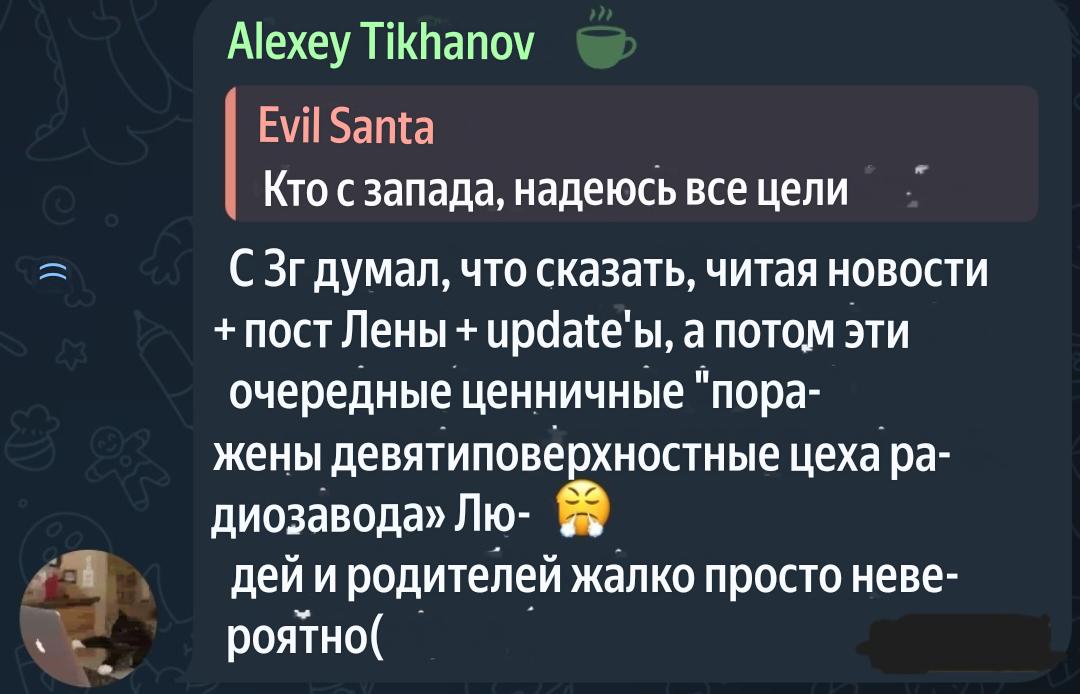Мне вот блять интересно, Лена же прекрасно понимает, что тандер не совсем здоровый человек, даже ее админы замечали это. Седой взрослый мужик живущий с мамой и отправляющий всю зп интернет телке и во всем пытающийся угодить ей, так здоровый человек вести себя не будет. Он уже одержим ею, живет от стрима до стрима, а между стримами дежурит от ютуба до телеги ну и естественно тут сидит. Ей его не жалко? Она бы мягко намекнула ему, что у нее есть личная жизнь и ему стоило бы найти девушку в реальной жизни и не сливать все деньги на интернет персонажа. А если ей абсолютно на него похуй, то нахуя она все время говорит, что она эмпатичный человек? Зарабатывать на больном человеке, это на ее совести. Чувак тартит на нее все время и деньги, а потом она выйдет замуж и учитывая его психическое здоровье, он легко сделает сальтуху из окна. Повторюсь, ей его не жалко и деньги не пахнут?