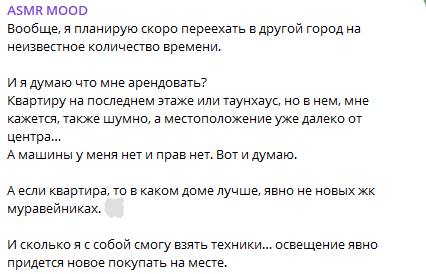 Тяжело быть тупой пиздой - всем давно известно что новые дома с тонкими стенками, всем известно что шумка помогает если только её делать и у себя и у соседей тоже. В чем проблема снять\купить хату в панельке на 9том этаже? Водительских прав и машины у неё нет. А у парня тоже нет? - Для кого этот пиздеж? Я не понимаю как она до 30 лет дожила.