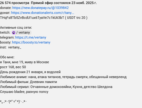 вот димка опять больше половины своей зарплаты с завода слил на танюшу за один стрим, теперь будет сидеть голодать, да танюше подбрасывать по тысяче-две за стрим, а иногда оправдываться, что не пришел, ибо нет времени (деньги кончились совсем), потом опять получка придет и задонатит побольшье