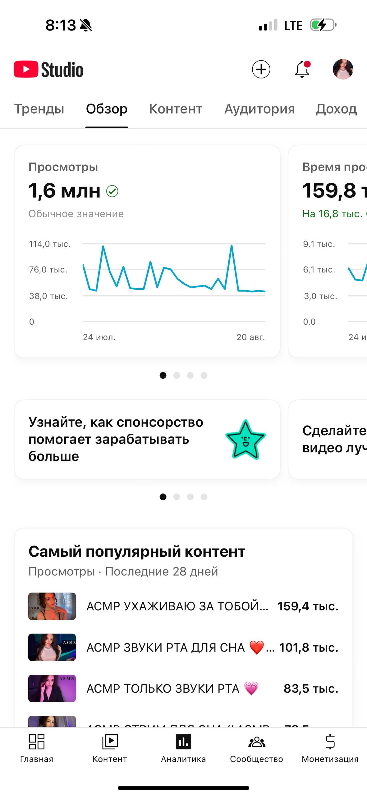 мне уже несколько лет интересно в этом меню, кнопка "монетизация", но она за двумя паролями наверное держит youtube studio и никто кроме неё туда не заходит, а если случайно взгляд чей-то, она начинает шипеть и она потом... так ладно