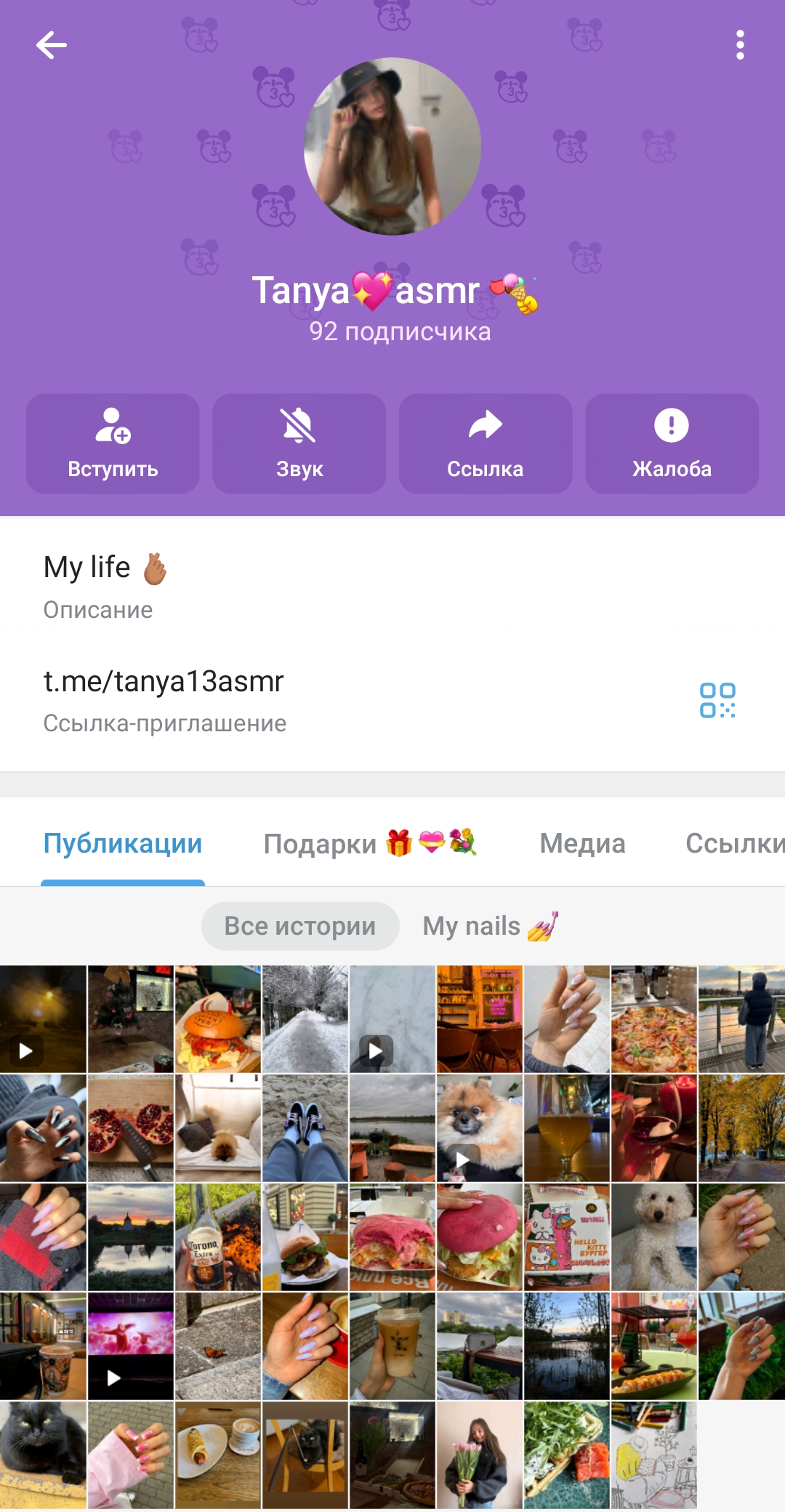 советую кто хочет делать ей контент (канал в телеге левый) или кто хочет тратить 10 звёзд в тгк или кто знает её личку написать , а на хуй вам это надо)) хотя хуй знает, может именно конкретно вам она будет дарить премиум в телеге и подарочки нфт и погуляет с вами даже, мож я лох просто тупой такой, но судя по тому что и она и её подруга закрыли личку, вам не рады в личных сообщениях будут.