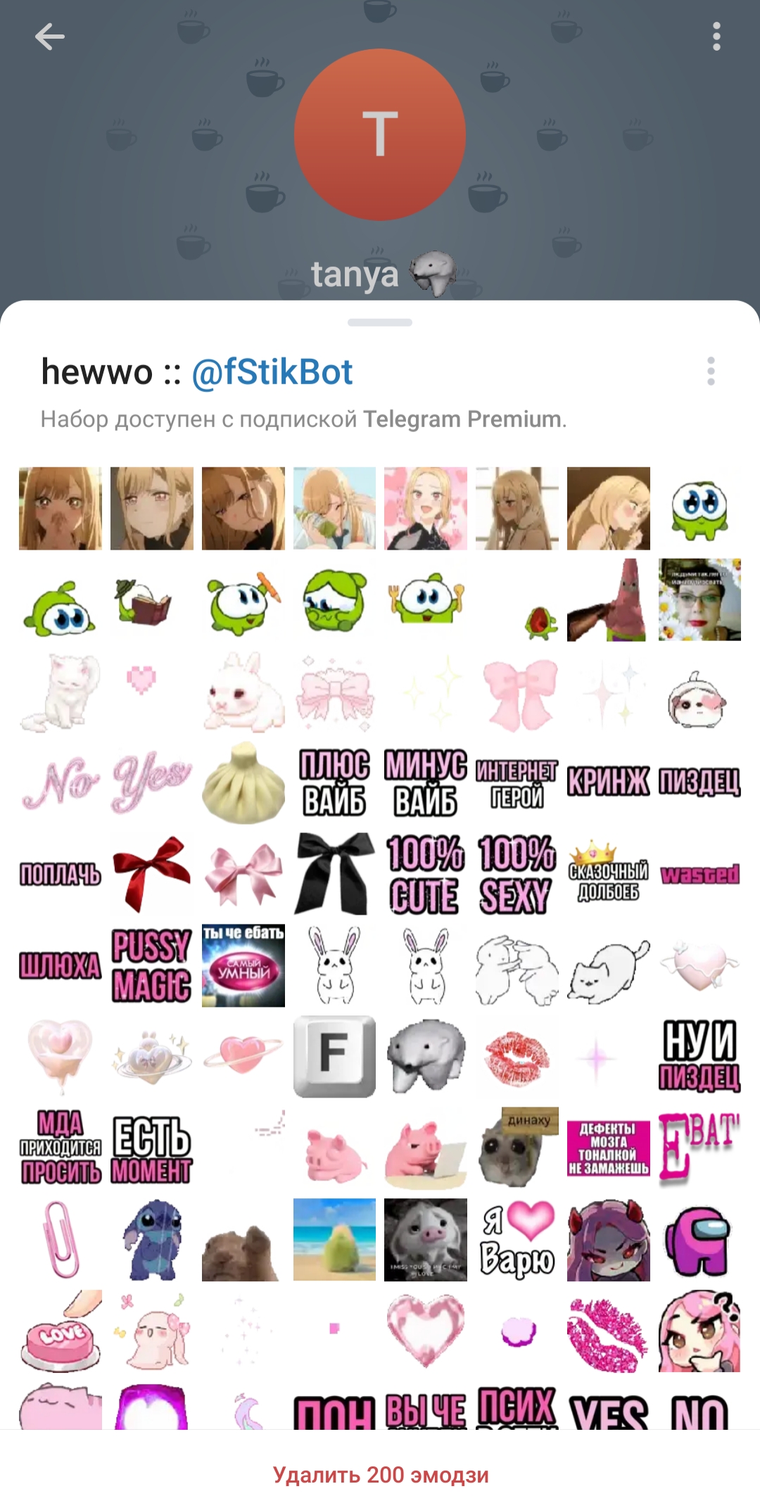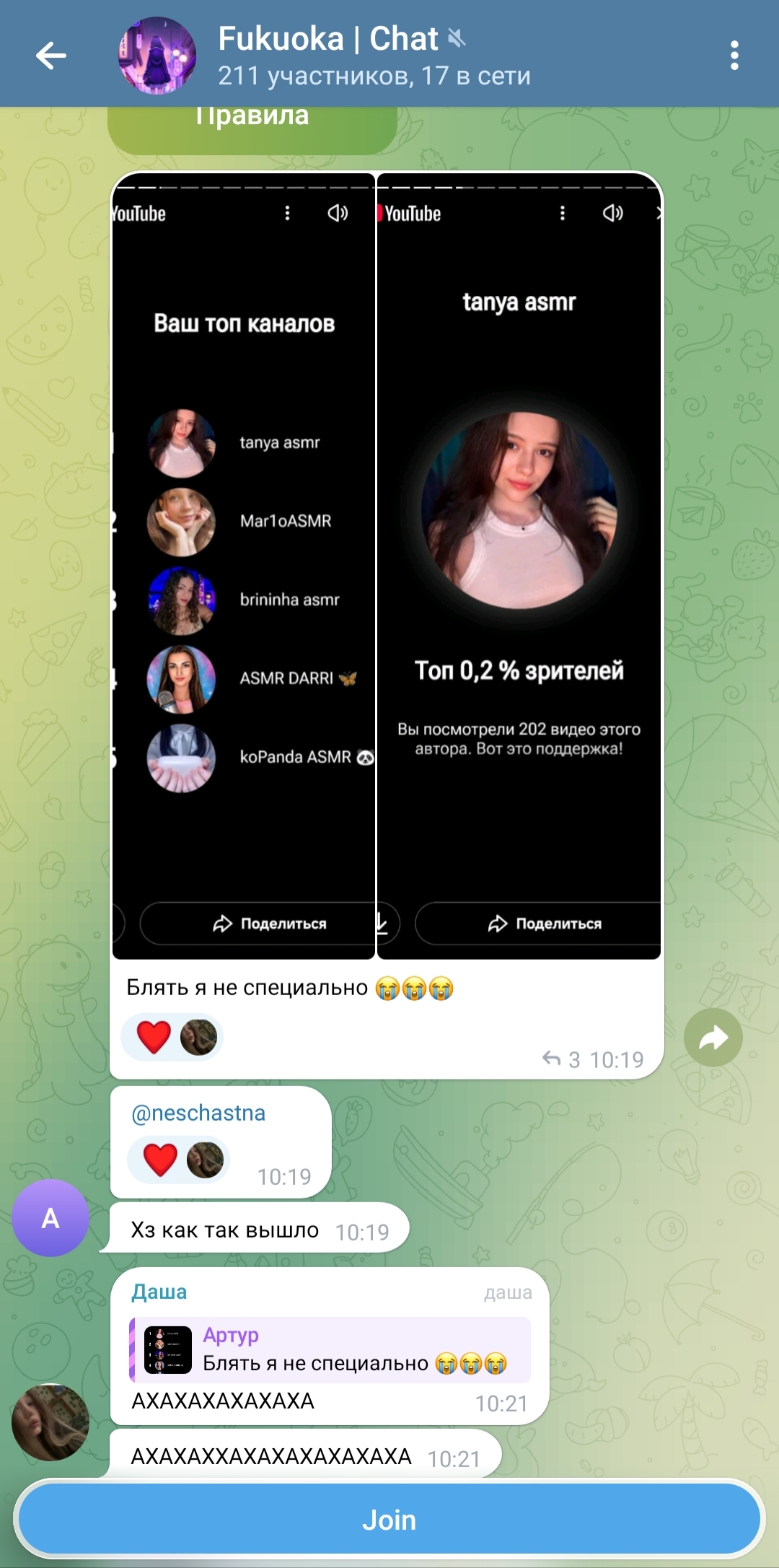 Таня ставит реакцию ебущейся головы на канале (я думал голова кивает просто, но нет там порно пак какой-то), а чо нормального ничего нету да Таня (щас она ещё и сиськи выложит, чисто бабская хуйня, нет она мне их в личку пришлёт, точно, ибо она знает я не выложу их сюда хах)