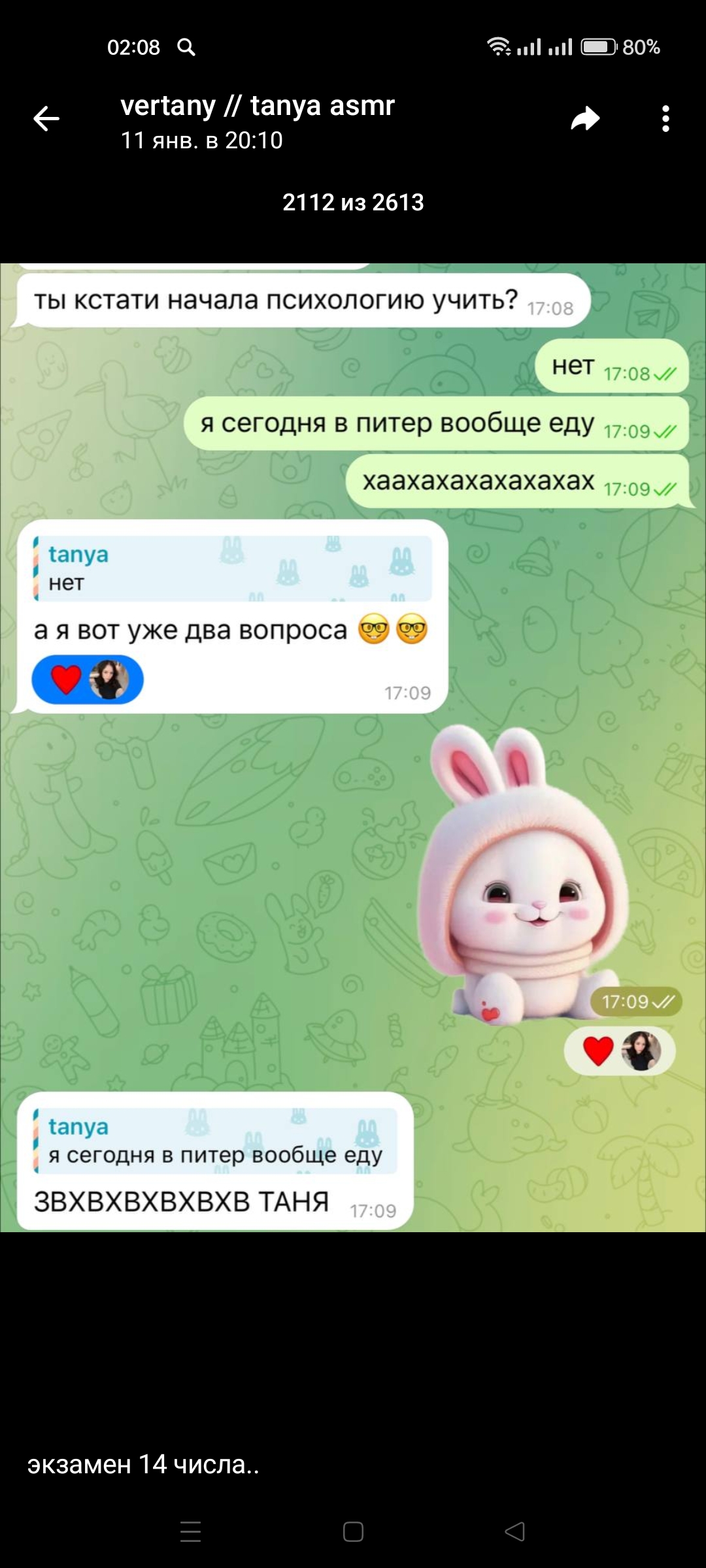 я начал ждать Таню ваню и анжелику в гости.,но вместо этого мне начались спам звонки многочисленные (и мне некая Лина написала снова что нравятся ли мне эти спам звонки с разных номеров), после такой агрессии, я пошёл за психологической помощью.... к создателю двача в личку, всё про них обеих рассказав, он меня выслушал, поговорил, и сказал скорее всего это так над тобой шутят, меня это успокоило ибо у меня был стресс, страх смерти.