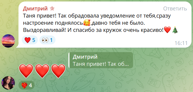 >>208017 ну от меня отстали, вам если экшона хочется в жизни, пишите тут ей угрозы и херню в лс, хотя хуй знает, может ей тот канал в телеге и нравится, может ей просто когда в личку хуйню пишут не нравится, без понятия, Александра поначалу меня тоже не банила, и она, но за канал я думаю Таня тобой лично займётся приедет, хотя может ты этого и хочешь, также не знаю что в твоей голове.