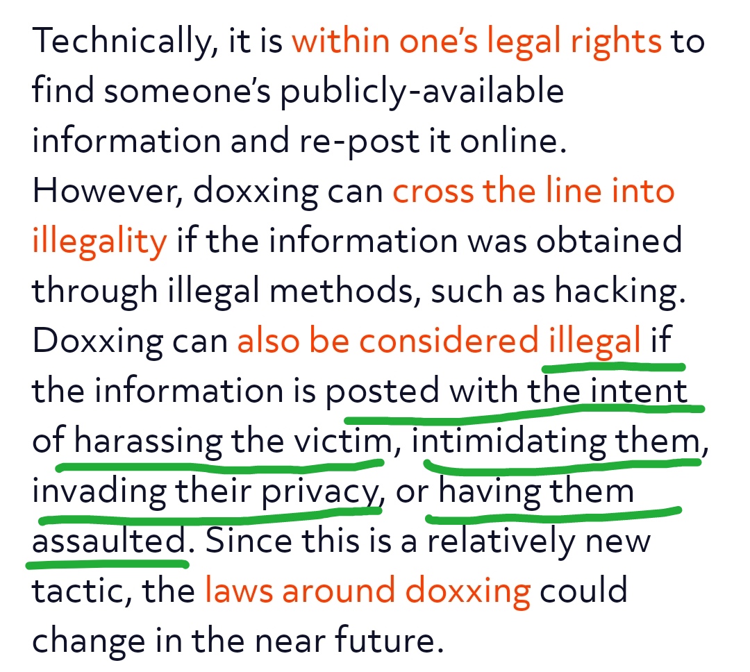 Кроме того, я был бы в тюрьме, если бы нарушил закон. Я не нарушал закон. Я ее не беспокоил. Имя и возраст не беспокоят. Больше ничего не было опубликовано. Это не доксинг и не сталкинг. Вы, идиоты, не понимаете определения.