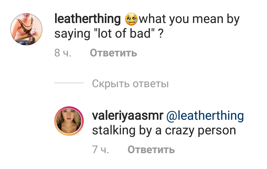 >>60235 Ну да, сталкеры ведь в комментах на ютубе сидят. Я не понял, в чем твоя проблема? Валера пожаловалась, что не очень рада своему каналу. Все предположили, что из-за того, что сделал Эрик, у неё психологические проблемы. Он псих, ты чё не видишь? Ты прибежал и начал за него впрягаться. Ты ебанько?