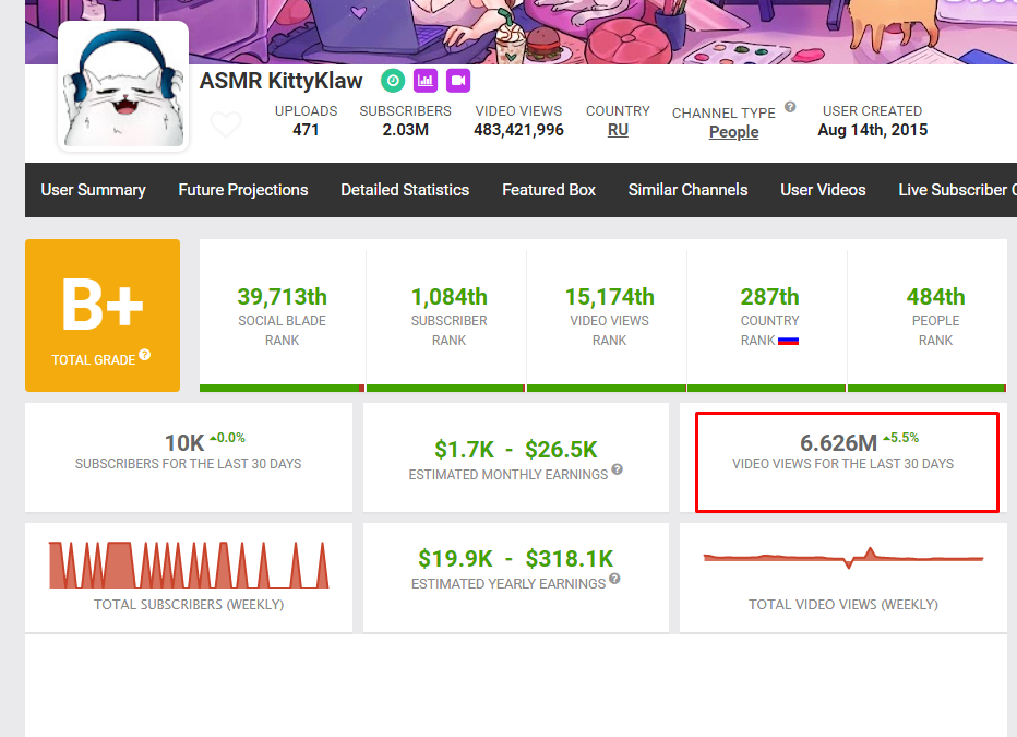 >>96212 Добавлю, что у Тани 6 лямов просмотров было ТОЛЬКО НА ПИКЕ КАРЬЕРЫ, сейчас же там далеко не такие показатели! А кити клав это обычные просмотры
