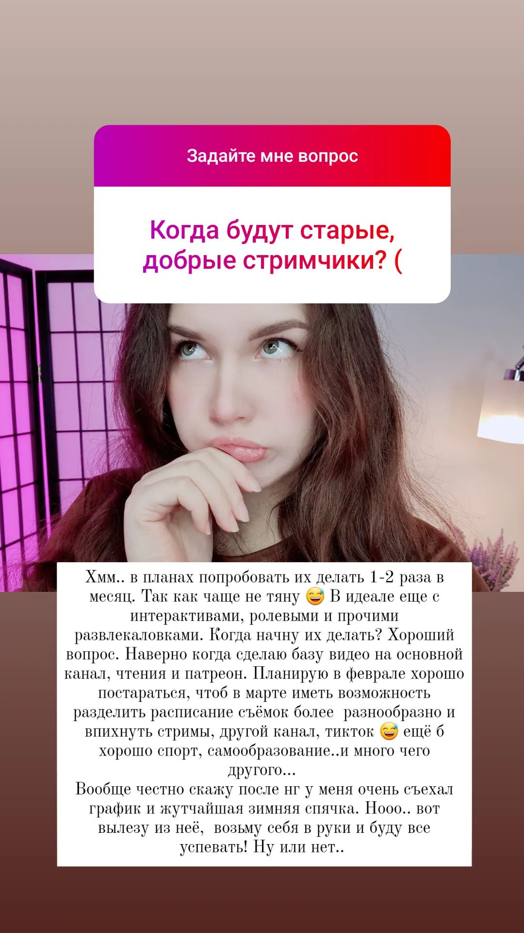 Ребят, по поводу 4 стрима, который в идеале должен был быть сегодня...его не будет.. если честно я уже выдохлась совсем Хочется просто украшать елочки, комнаты, паковать подарочки и проводить время с близкими... А проводить стрим как засохшая морковка не хочется. Вообщем не вытягиваю В этом году в декабре уже много чего вышло на ютубчике и патреоне и вас ещё ждёт: Сегодня видосик на ютубе с ролевой игрой И так же сегодня видео с ролевой игрой на патреоне А на следующей недельке: На ютубе видео с фейлами и видео поздравительная речь. На канале чтения новогодняя история. ❄️ А потом.. уже увидимся после новогодних каникул Так что.. я уже на перерыв и отдых, чтоб в следующем году сделать ещё больше и лучше, сочнее и интереснее! Ну или нет