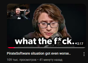 когда началась биг драма вокруг этого чела краем глаза видел, что он там чёт против стоп килинг геймс и всё такое, ну похуй потом ещё триллион клипов ежедневно мне предлагалось, но я не чекал и вот ща чекнул очередной пушт БЛЯТЬ ДА СКОЛЬКО МОЖНО ЧТО Ж ТАМ ТАКОЕ и проиграл блять пиздец там нахуй уже истории от бывших коллег как он на работе в жопе ковырял и скроллил реддит и всех тормозил, а дома у него стены облиты спермой ещё через месяц чекну какой-нибудь клип и там расскажут, как он обмазывался несвежим калом и дрочил вприсядку верим? я да я верю я поверил