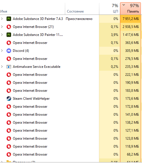 охуенно +вылет пеинтера чё там, 64 тоже не хватает? мне блять диспетчер на втором мониторе держать открытым? или это пресловутые ошибки и нестабильности озу, которую я не гонял тестами прокнули