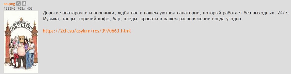 >>3971752 >...занятия по реабилитации и социализации, трудовая деятельность, творческие кружки, групповые мероприятия. Вот например недавно собрали всех аватарок вместе и заставили под феназепамом красить забор и стены. Вытаскиваю из кармана рекламную брошюрку психушки и отлистываю на разворот с фоткой веселого буйнопомешанного и прейскурантом. Здесь написано все то же самое! А еще они обещают трехразовое питание и палаты с мягкими стенами. >Что ты думаешь о коитальной терапии? Розовею. Даже не знаю, что бы это могло значить... Это же не больно, да? >Когда тело одно - проблем нет! Это пока нет проблем, а ты представь, что одна из вас решит покушать соленую селедочку с кефиром или вдруг увлечется суровым мазохизмом. Это же будет так неприятно! >Но мне несколько раз прилетало за лишние килограммы и неожиданные побудки в чужой постели. А как может прилететь от бестелесной... сучщности? >Научный термин, введенный доктором Кирой! Это аватарка, которая отказывается признавать себя таковой или выступает против других аватарок. У Мелиссы еще и личностная ренегация прошла - она считает себя скуфиком мужского пола и считает, что мы тоже такие, хотя раньше была шикарной латиной! Поняла-поняла, Мелисса - это и есть тот самый знаменитый Паразит, залазящий в аватарок и устраивающий всякую токсичность от их имени.