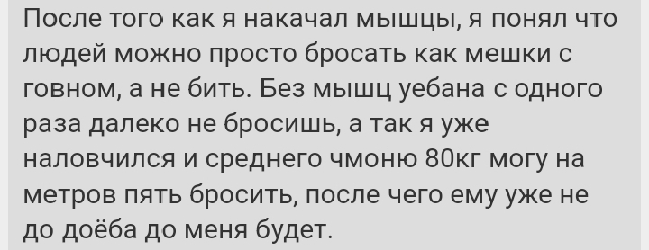 там в бэ тред про жимцелов , что то кекаю с них пиздец. они буквально все качаются чтобы понравиться селёдкам и чтобы их БАЯЛИСЬ. удачи нарваться на боксера да или на обычного чувака который тебе кочкопетуху ебало снесет, у вас еще после этого розовые очки слетают так потешно <з