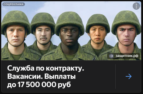 >и негры тоже? ну типа прям массово Да. На ЛА часто постят фото с фронта с техникой и бойцами, и там чернорусов много мелькает. Это из-за того, что у иностранцев упрощённая система получения гражданства после участия в СВО.