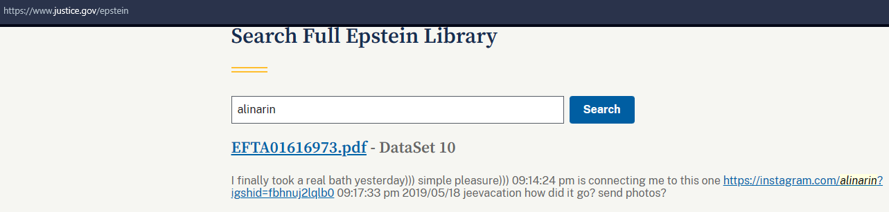 >мнение Я не очень понимаю, что там. Типа Алина Рин фигурирует в файлах Эпштейна?