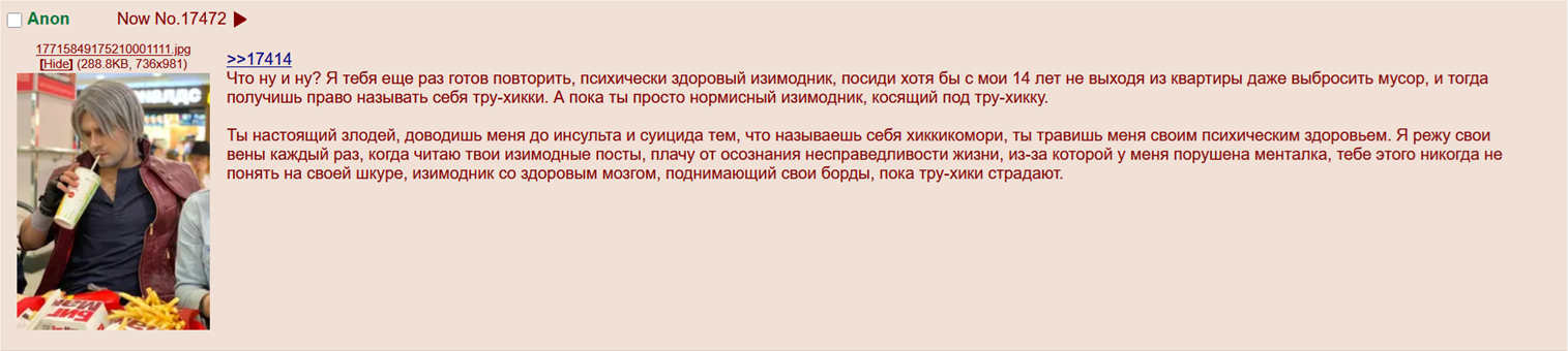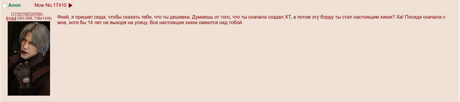 У меня есть теория, что троллей не банят в ХТ потому что они регулярно дают на лапу чмодеру, типа попить пива там.
