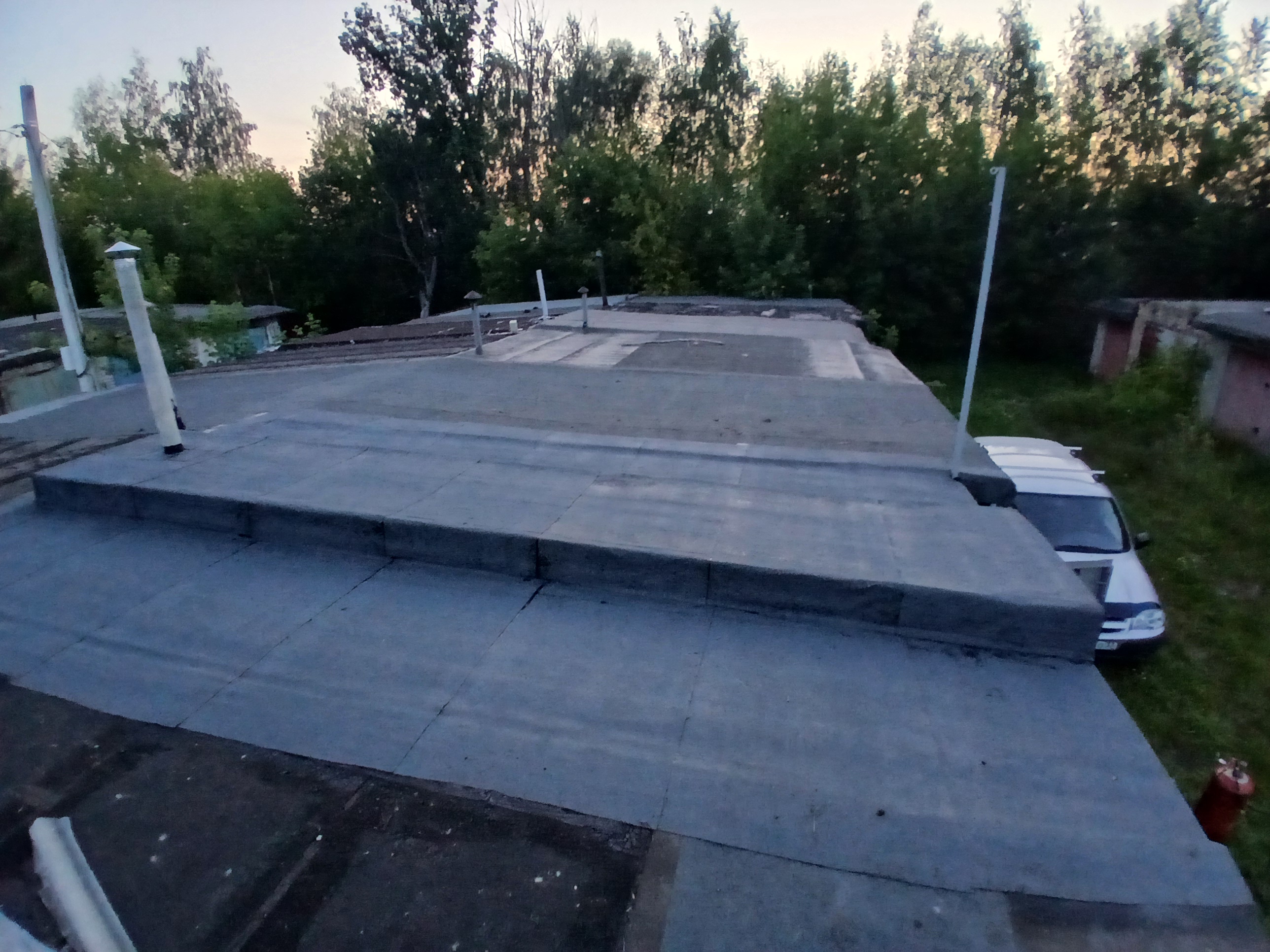 Июль, август перекрывал крышу. Снял всё старое до плит, промазал праймером в два слоя, потом мастикой в два слоя, вот это была ошибка! Когда начал укладывать первый слой унифлекс эпп, просто купался в этой мастике, хотя сохнуть дал две недели, того рот ебал. Так эта мастика на жаре ещё и течь начинает в гараж между плит. Последний слой унифклекс ткп наплавил, теперь збс, крыша не течёт.