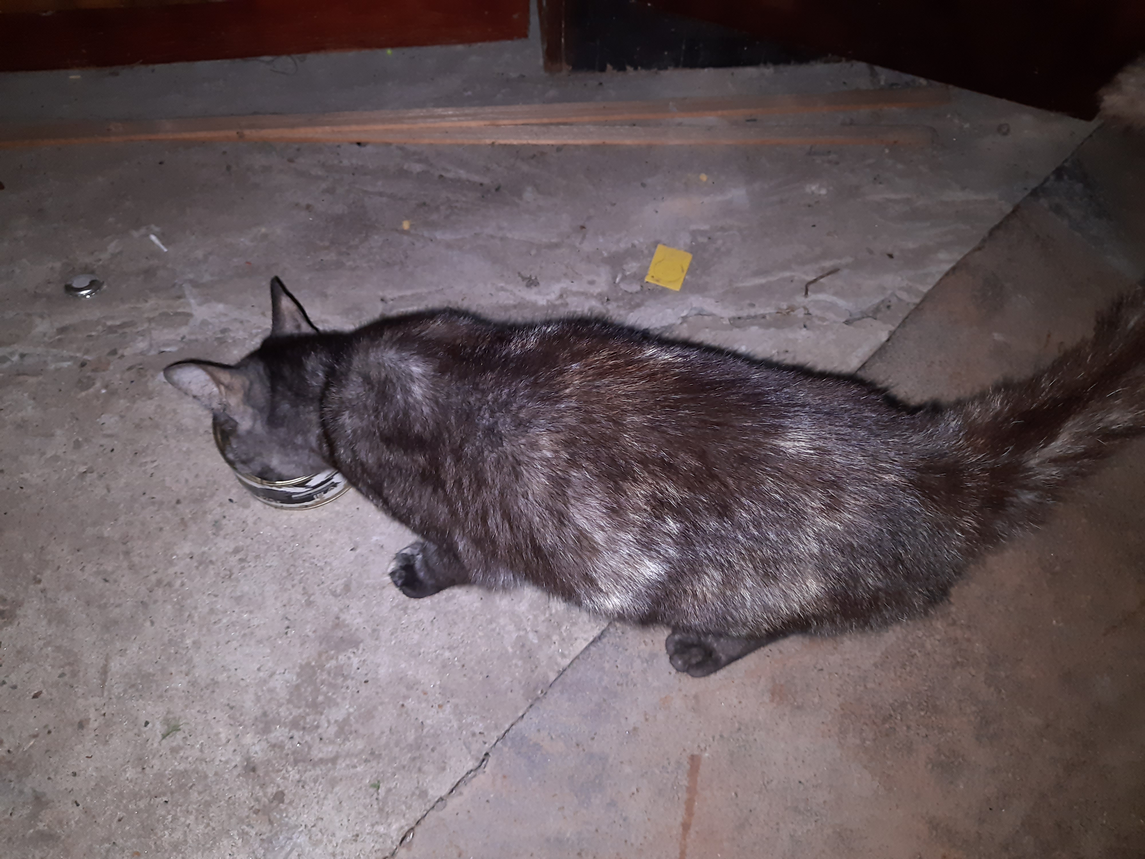 Эта шлёндра ещё и беременная похоже. Говняков кошачих не боюсь, есть лоток запасной, куда наполнителя закинуть можно, разберётся наверно, да и за пару дней много не насрёт, если даже она совсем дичь.