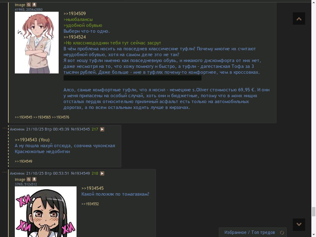 Т.к. не являюсь нормиблядью(мужиком), и до круглой в вакууме опоры@каменной_стены@добытчика не дотягиваю, то с подобными им и не схожусь. Вот и нужна опекающая меня жёнушка: какая-нибудь активная фемдомящая анимешка(что поделать, если саморазвитие через маняме приводит к определённому складу личности)/мамочка, с шилом в жопе, и без критических бед с головой вроде наркоманииалкашня и сосалки дымных палочек не считаются(либо будешь медленно, но верно отучаться), без всяких попыток дегенеративного "самовыражения" через картинки на своей тушке или железок в непредназначенных для того местах. Зато можешь быть просто инициативной или властнодоминантной, ~ня! А если западаешь на низкорослых неудачников помладше и в целом любишь быть за главную в отношениях и семье, а также носить туфли-лодочки и юбку-карандаш, то совсем ~ня! Да, таких вообще не существует, но ты же понимаешь, что лучше не найти вовсе, чем найти дурнопахнущее нечто и терпеть, верно?