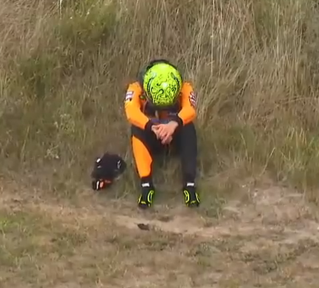 Квала - чуток гравия насыпалось, надо остановить сессию флагами, чтобы чморис из десяточки не вывалился и смог улучшить @ Гонка - кучи гравия на траектории прямо на выходе из поворота, всем пох.