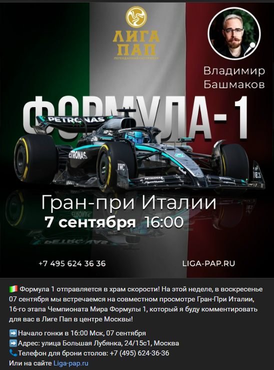 Расскажите, пожалуйста, всем нам, когда вновь откроется клуб-бар "Гаснут Огни"? Мне и моей жене там очень нравилось, хотелось бы опять посетить это, наполненное духом Формулы 1, место. Я еще хотел привести туда своего шестилетнего Илюшу, чтобы он начинал знакомиться с миром автогонок и смотрел гоночные уикенды под несравненное комментирование мэтра спортивной журналистики.