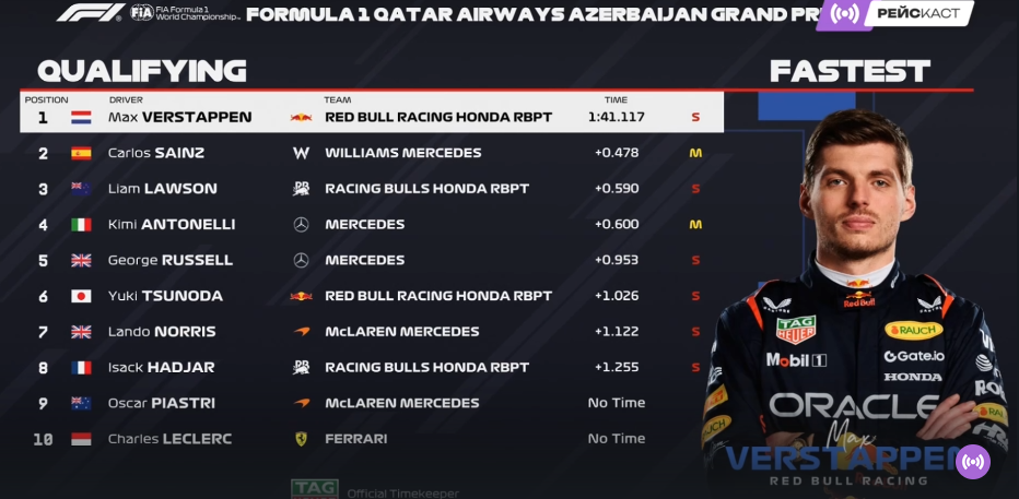 >Самой продолжительной гонкой в этом сезоне стал Гран-при Австралии, который продолжался час и 42 минуты >Квалификация на Гран-при Азербайджана началась час и 52 минуты назад