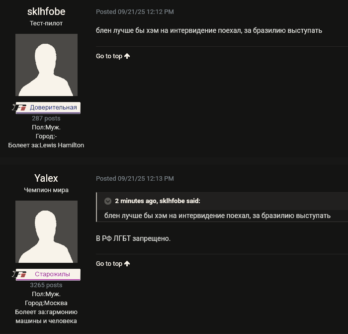 Всем здарова мужики. Стал снова смотреть Ф1 спустя 8 лет. Подписался на симпли формулу и бля очумел что половина комментариев от девушек. Все восхищаются легендарной личностью Хэмилтоном, жалеют Норриса, одобряют пиастри. Зашёл сюда тут вижу все пацаны нормальные. Буду с вами теперь тут сидеть, обсуждать.
